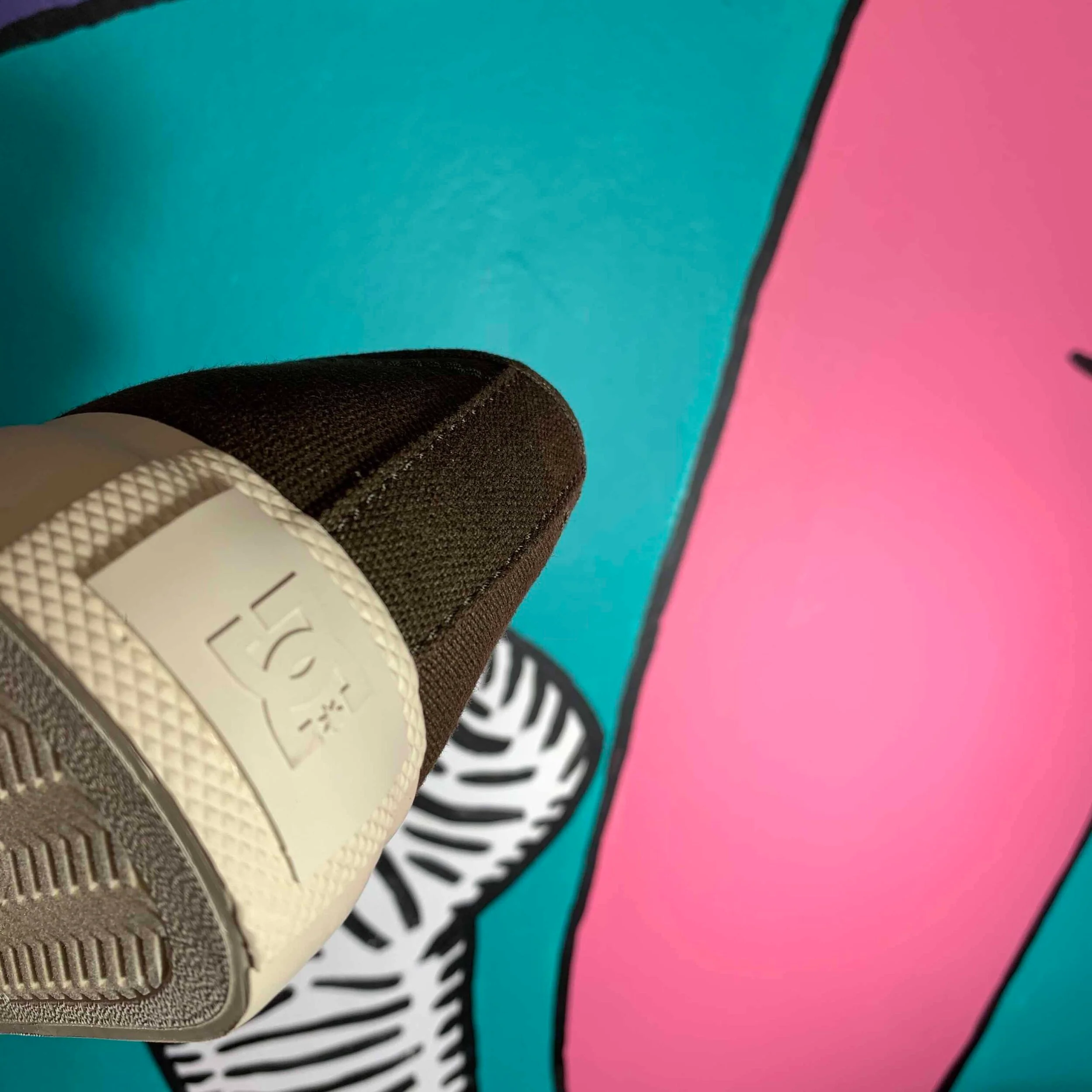 Outsole with DC pill pattern and herringbone tread pattern